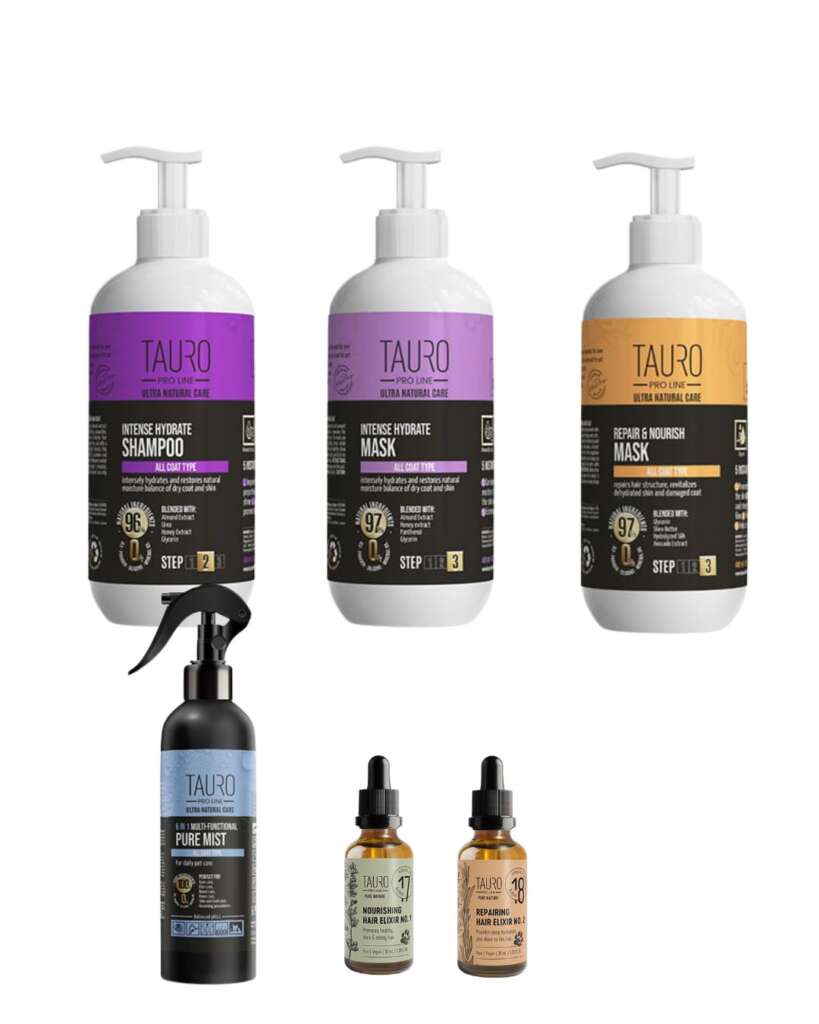 Dlatego powstała Tauro Pro Line – linia profesjonalnych kosmetyków stworzonych na bazie naturalnych składników, dopasowanych do indywidualnych potrzeb skóry i sierści. To efekt wieloletniego doświadczenia w groomingu, kynologii i codziennej pracy z psami na całym świecie.